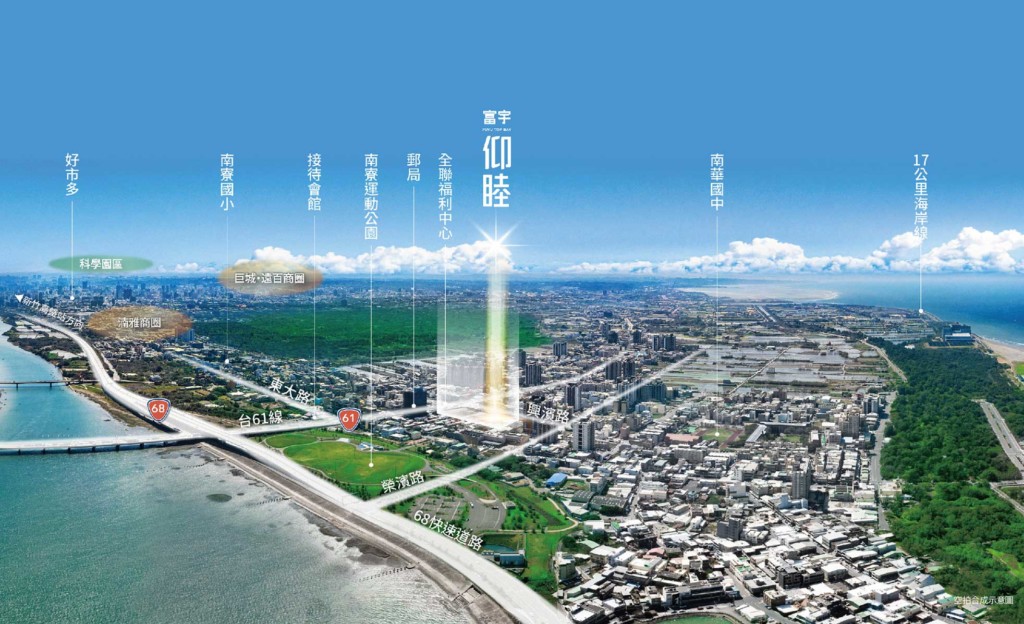 【富宇仰睦】承襲富宇往昔雍容大器規劃實力,將南寮天際線蛻變為國際級海灣新風 景,以絕佳美學觀點開拓謙退街道質感,磁吸重視舒壓療癒的科技族群及軍公教族群 前來鑑賞新案,眾人期盼未來富宇建築大道磅礴問世。以【富宇仰睦】為圓心,走路 可達全聯及超商、郵局,近傍國際風箏賽場、南寮運動公園、南寮國小、波光市集、 珍貴 17 公里壯闊海岸線,開車可享湳雅蔦屋大潤發、巨城大遠百、東大路、經國路等 鑲金商圈,已然成熟的海灣生活圈相當適合親子移居、熟齡換屋,從富宇到賦予, 【富宇仰睦】將生活品質推向峰頂。