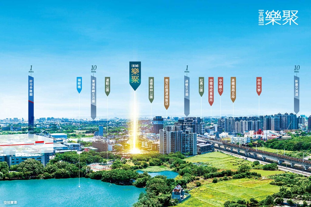 「宜誠樂聚」好市多、民族路商圈生活機能完善,且在新屋頭洲、中壢、大園和青埔交界,開車至以上區域僅約10至15分鐘地理核心優勢,「宜誠樂聚」周圍擁有廣大面積綠地、埤塘等自然生態,享有千坪水公園綠意風景,1樓過馬路就到官方養護籃球運動場,健康住宅環境活力更充沛!此外,「宜誠樂聚」交通便利,快速銜接台31線,並直通桃園高鐵站,另外66快速道路則橫貫東西地段,串接國道1號、2號及3號,串連大桃園地區。