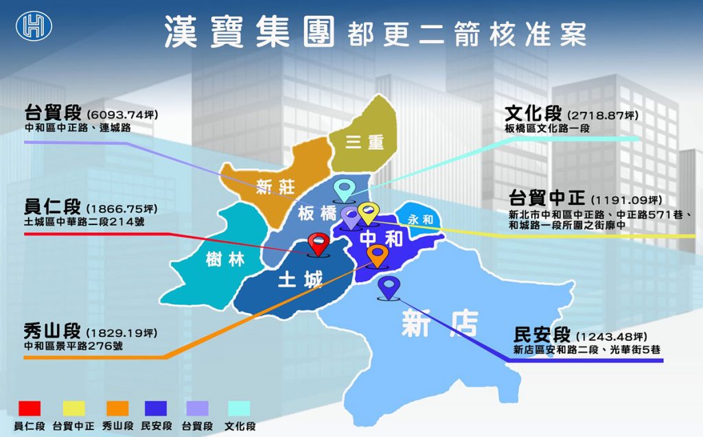 「漢寶集團」攜手「興富發建設」共同創造都更新頁,打造新北市中和區「台貿一城」社區超過6100坪大基地,成功完成報核創下國內自辦都更新標竿。