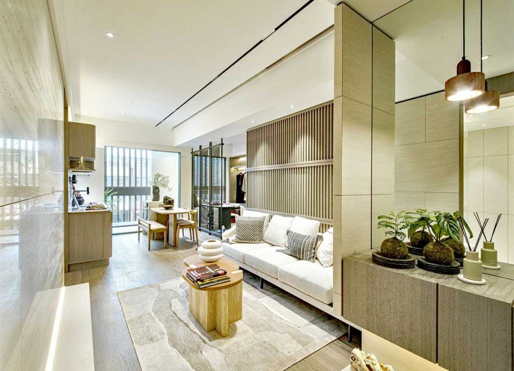 全案導入國際級設計與高端配備,邀請知名設計團隊「上境景觀」操刀公設,打造全齡共享空間,包含湯屋、練團室等特色設施,營造有如度假飯店的居住氛圍。結構則採用戴雲發Alfa Safe柱中柱工法,並使用德國BOSCH四機、Hansgrohe衛浴與YKK水密窗,公設與建材全面對標豪宅規格。