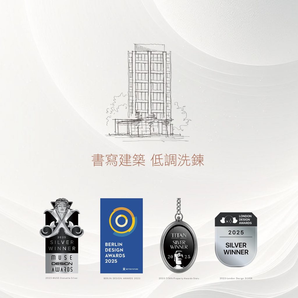 除了建築設計,室內配備也絲毫不馬虎,從Noblesse廚具櫃體、林內三機,到Panasonic馬桶、德國Hansgrohe五金,再到YKK AP氣密窗與德國太格木地板,「易捷聿白」同時也獲得國際肯定,近期榮獲London Design Awards、MUSE Design Awards、美國TITAN地產大獎與柏林設計大獎四大獎項,每處細節皆展現頂奢住宅級的設計。
