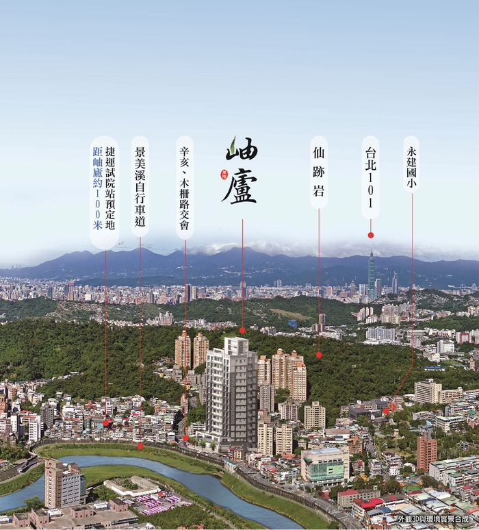 台北市豪景住宅,以河景、公園景、山景為三大指標,但極其稀有、可遇難求。只要擁有其一,即是身價非凡、萬眾競逐之標的。「岫廬」立地條件得天獨厚,前臨寬闊景美溪,後倚萬坪木柵公園及仙跡岩秀麗山景,三景集於一身,實屬稀有中之極致。