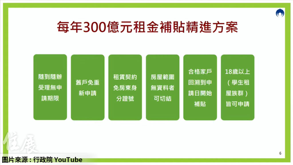 優先照顧租屋族,針對租金補貼也提出5大精進作為。(圖/行政院會後記者會直播)