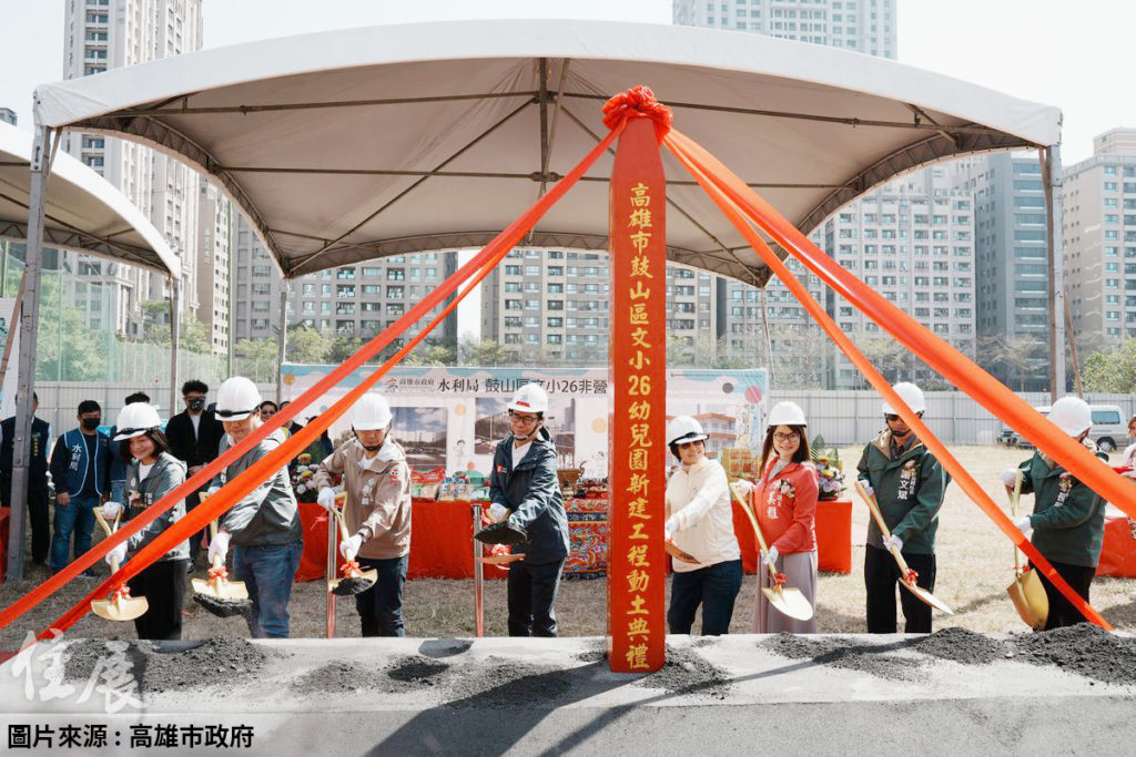 高雄市鼓山區文小26幼兒園新建工程動土,未來約可提供380位名額,讓小朋友就近上學。(圖/高雄市政府)