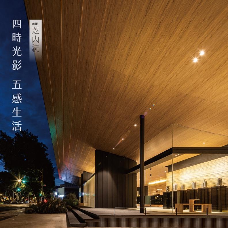「禾碩芝山綻」規劃A、B,2棟13層樓高的雙塔建築,接待中心寬敞氣派,彰顯尊榮不凡氣勢,另提供影片、模型室和樣品屋,讓客戶實際感受未來美好的居家生活。「禾碩芝山綻」立面外觀設計巧妙利用景觀陽台,錯位配置大尺度引進自然能量,為住戶帶來清新活力。社區2樓為公設空間,戶外中庭露臺搭配格柵禪意花園,營造舒心優雅的別緻況味,室內則是複合規劃健身房、音樂教室、瑜伽教室及多功能廳,滿足餐飲、會議、運動等各種風格生活需求。