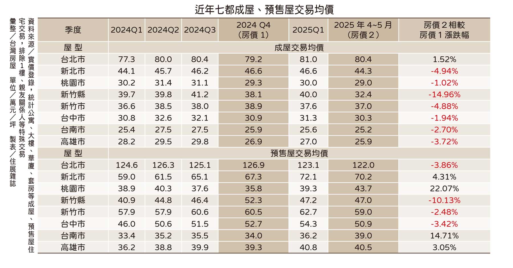 本刊委請台灣房屋統計限貸令前後七都房價漲跌情形,結果發現,無論是預售或成屋市場,目前新竹縣、市與台中市皆呈現雙雙下修,已成「雙降區」。成屋市場中,僅台北市仍勉力守住微幅上漲。但整體看來,限貸令後遺症持續發酵,實際交易現場已悄然出現轉向跡象。