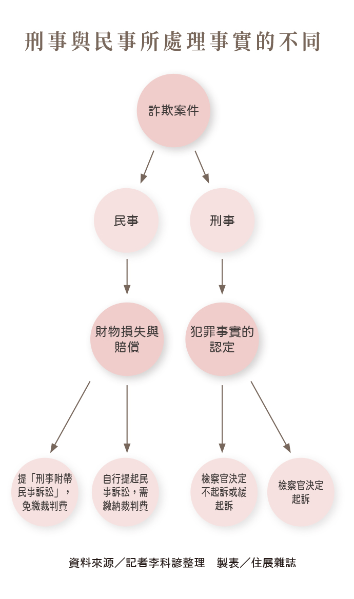 這是許多受害者最直覺的想法,但事實上,刑事案件的重點是追究犯罪責任,而不是直接處理受害者的財產歸屬。如果騙款、房產還在詐騙集團手上,受害者可以透過民事聲請假扣押,或請檢方扣押犯罪所得,防止財產再被轉移。