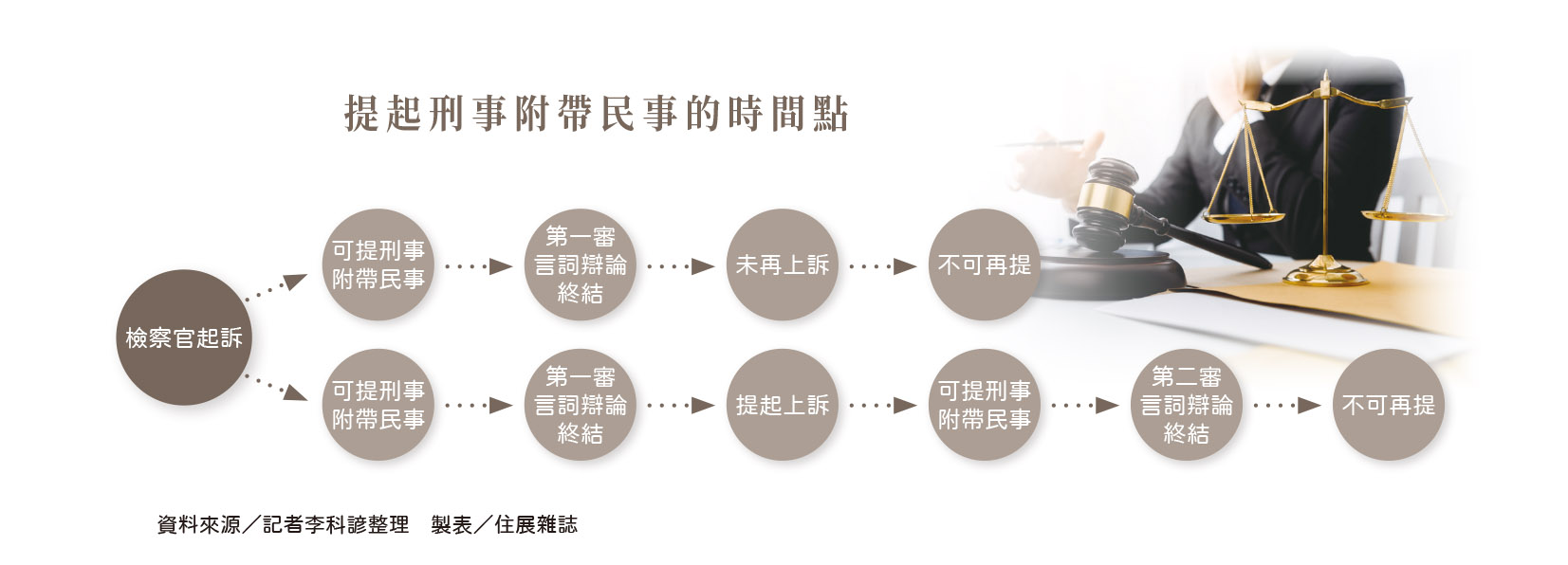 不過,法律也提供了一個較為省時省力的做法——「刑事附帶民事訴訟」。這是一種讓受害者在刑事案件審理期間,直接向法院提出賠償請求的方式,且好處是可以免繳裁判費。只要檢察官將案件正式起訴至法院,受害者就能向法院申請附帶民事訴訟。然而,這個程序必須在第二審辯論終結前提出,但在第一審辯論終結後提起上訴前,不得提起,這點常讓不熟悉法律程序的受害者錯失機會。